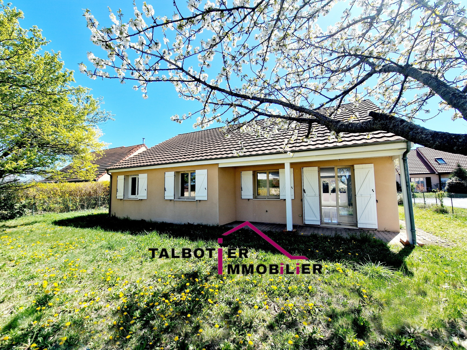 Sur un terrain plat de 605m², maison de plain-pied de 115m² avec Garage.