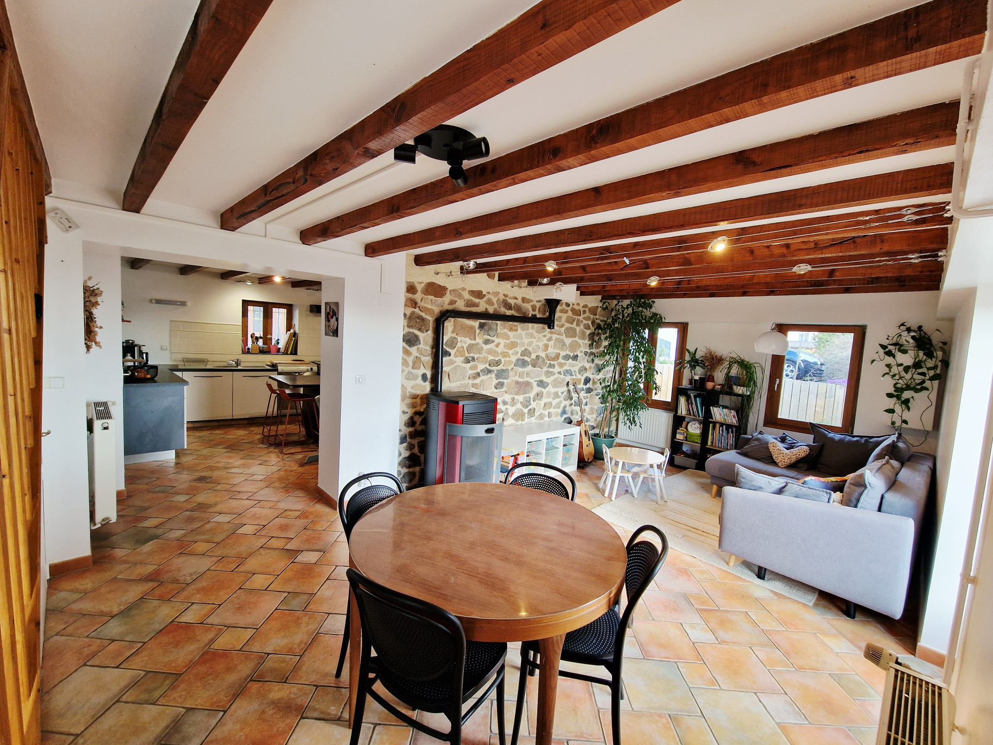 - cette pièce de vie chaleureuse (22m²) agrémentée d'un poêle à granulés, donne sur la terrasse bénéficiant d'une belle vue dégagée et de l'accès au jardin,