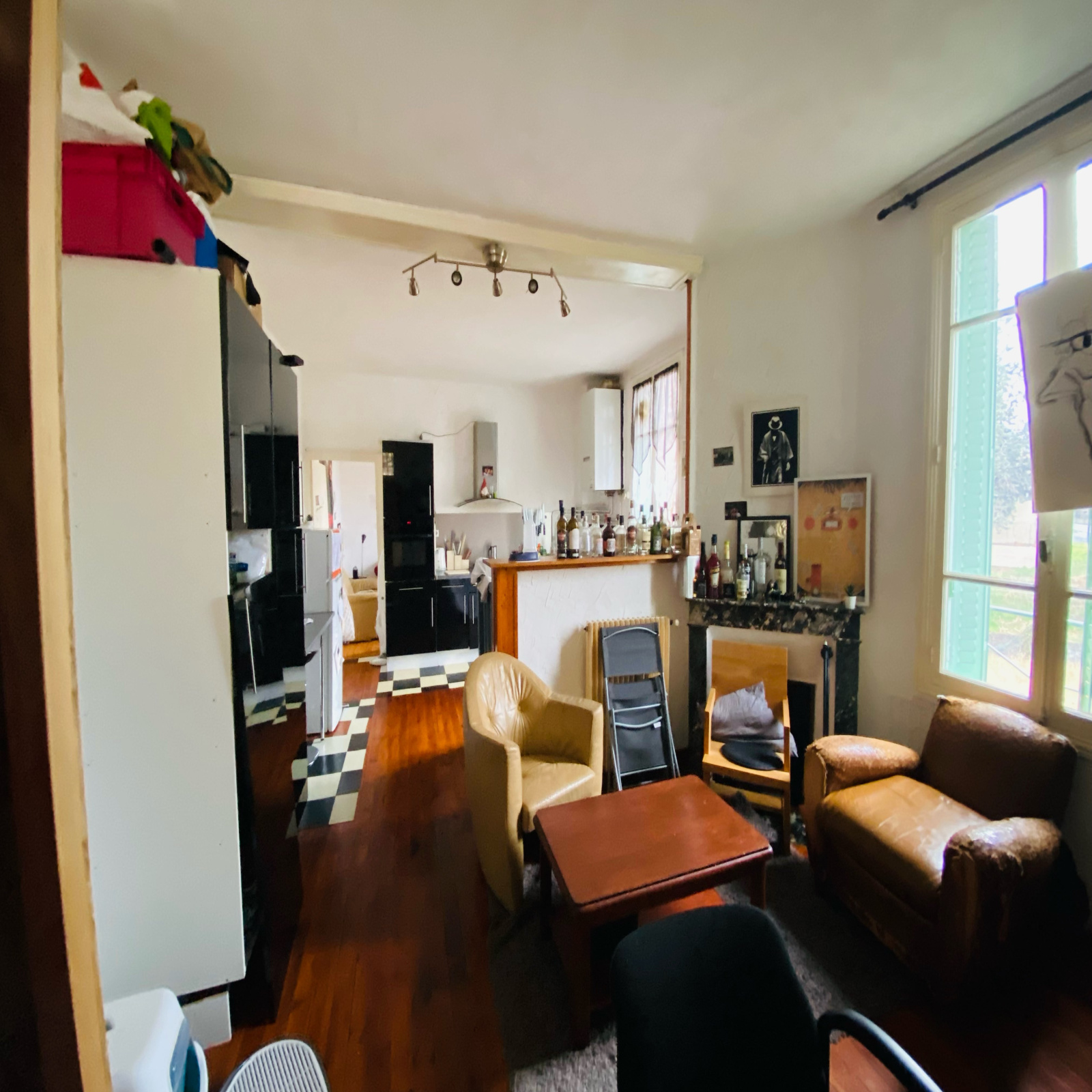 Au RDC : 2 chambres, salle d'eau et WC séparé. A l'étage : pièce de vie de 30m2 avec cuisine ouverte et une chambre (possibilité d'agrandir le séjour en supprimant la chambre