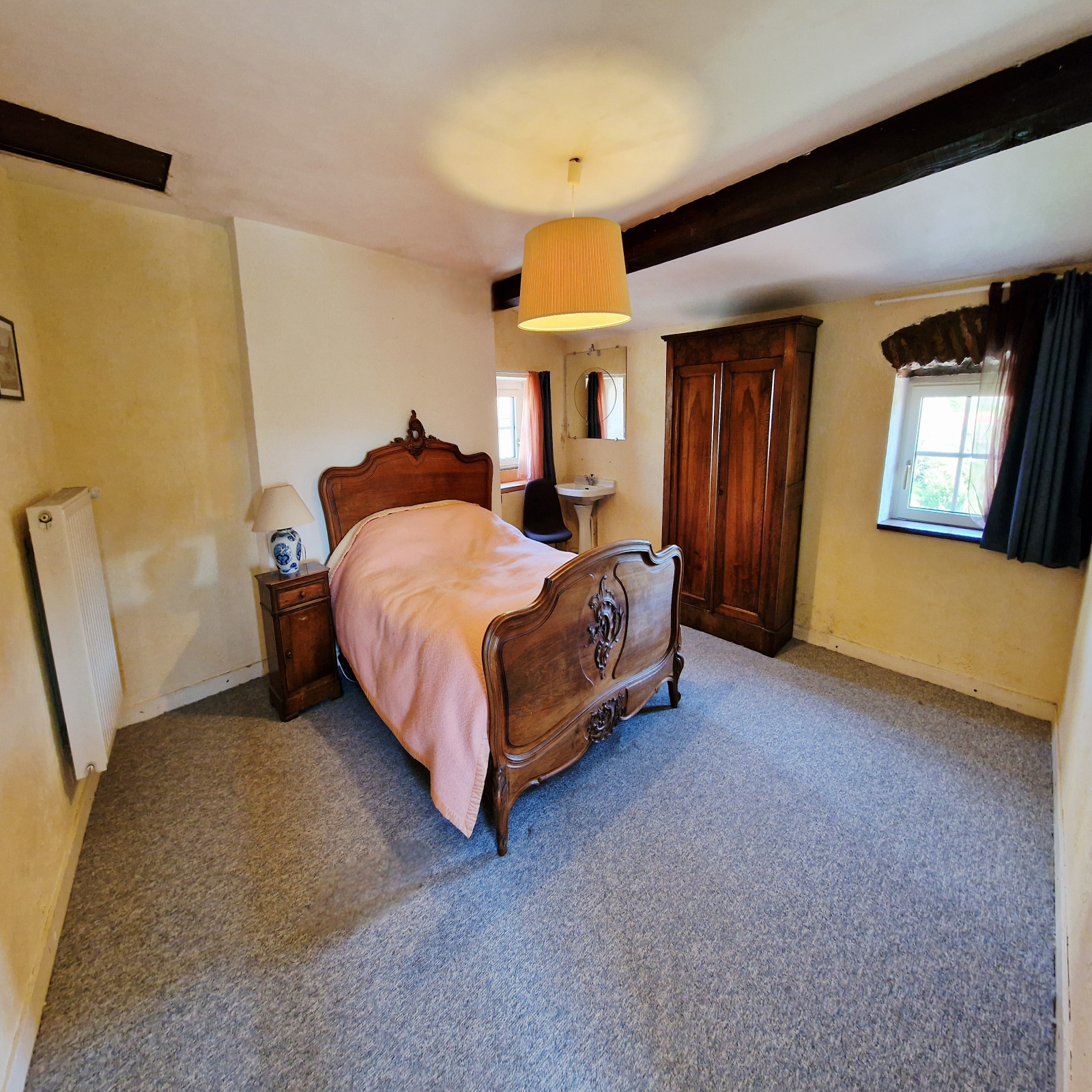 Cinq vastes chambres, deux salles d'eau, deux wc.
