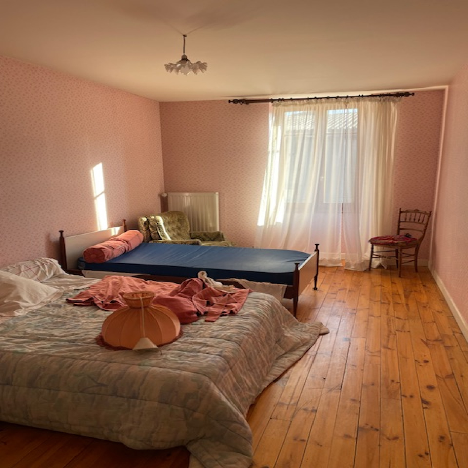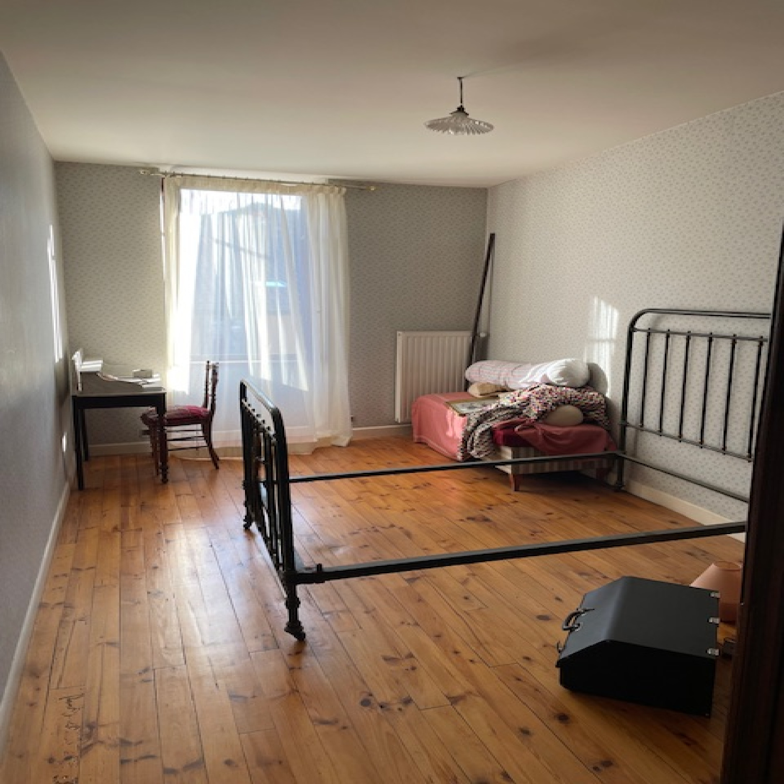 Possibilité de transformer la cour en grand garage d'environ 90/100m² et de ce fait obtenir une terrasse d'environ 100m² au niveau des pièces de vie.