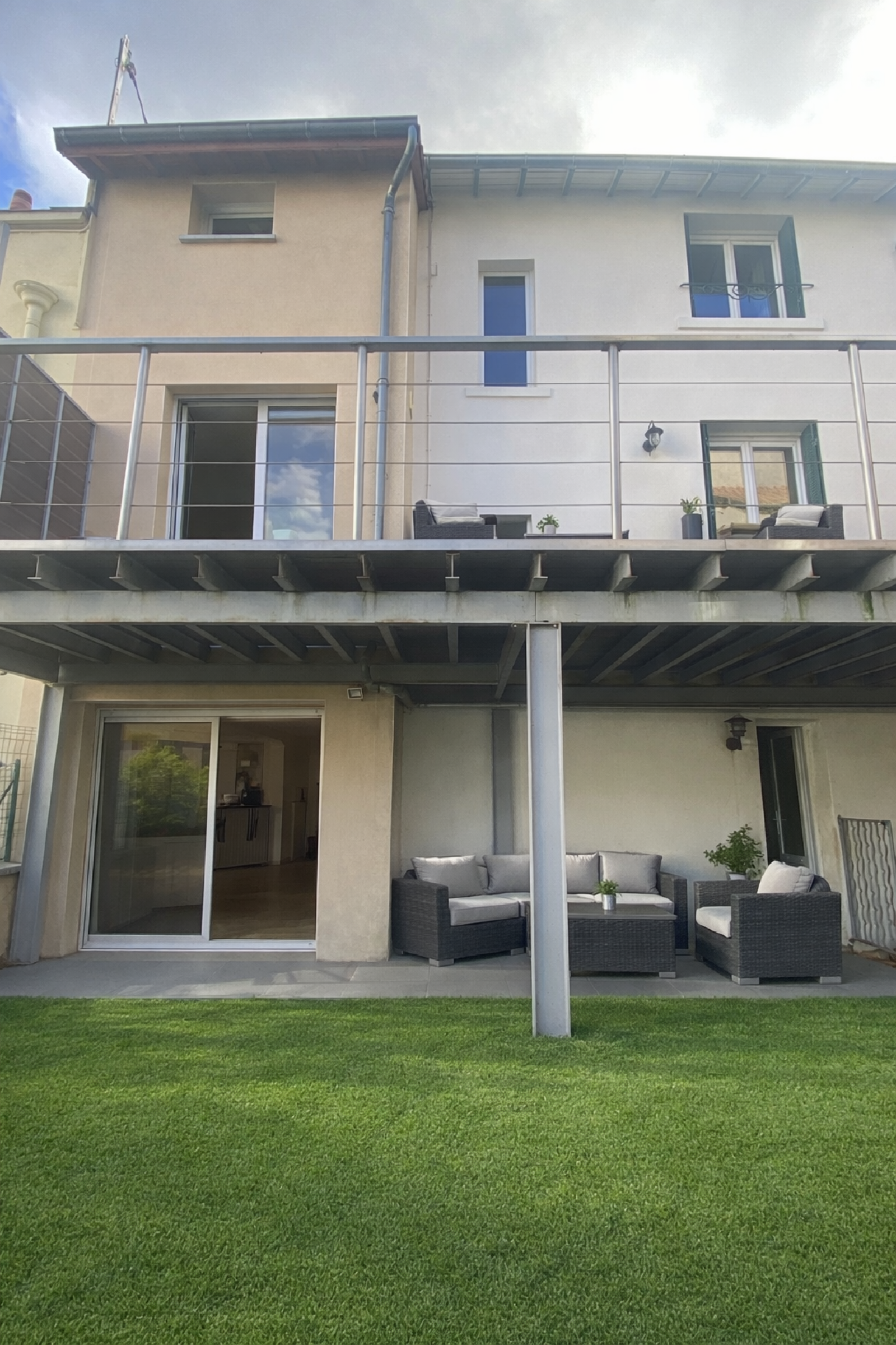 À l’arrière, vous profiterez d’un jardin d’environ 50 m², au calme, ainsi que d’une terrasse suspendue d’environ 30 m² sur structure métallique, idéale pour les moments de détente en extérieur.